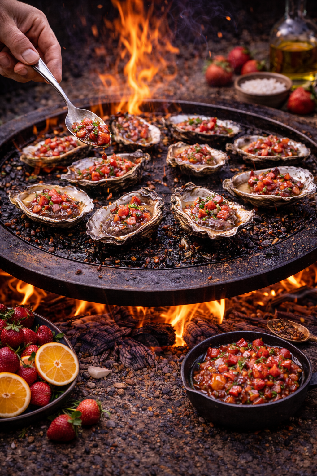 Huîtres braisées à la mignonnette aux fraises
